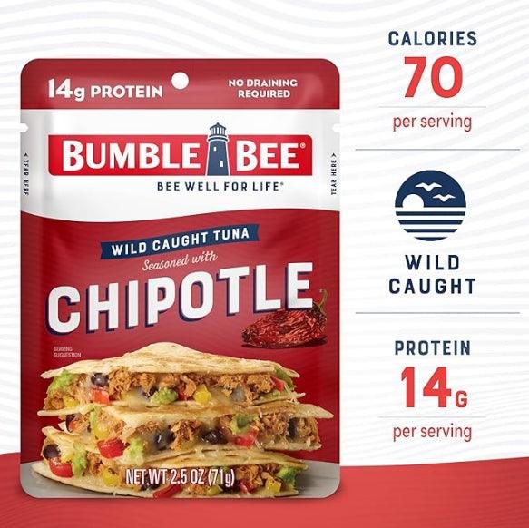 Little known fact, chipotle peppers are just ripened, dried and smoked jalapeño peppers. Better known fact, their smokey flavor and mild heat were destined for tuna. Perfectly marinated and seasoned, our Chipotle Seasoned Tuna Pouch comes with a spork in every pouch so you can dig into this smokey delicacy whenever and wherever you need a quick pick-me-up! (tuna fish)
