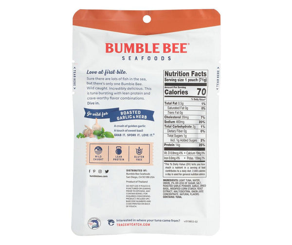 If you love garlic bread, you’ll love our Roasted Garlic & Herb Seasoned tuna pouch. It’s packed with all the garlicky, herby goodness and plenty of protein, but none of the carbs. Plus, there’s a spork built in so you can take it on the go, add it to a sandwich, or eat it straight from the pouch (no judgment, we do it all the time). (tuna fish)