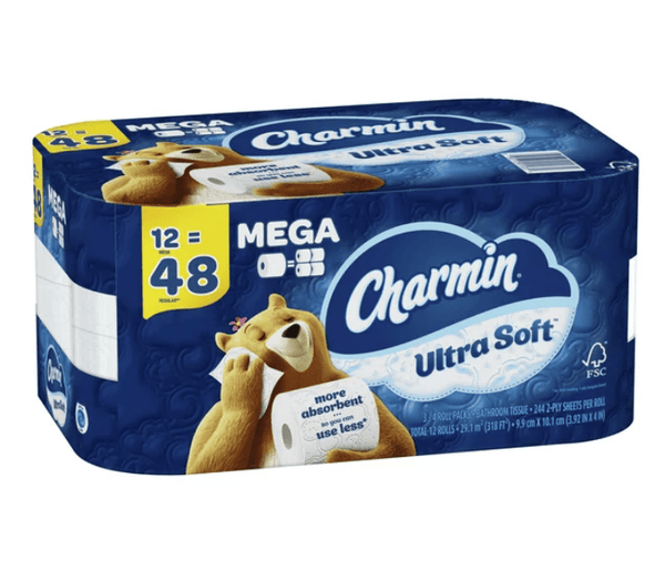 Pack contains 12 Mega Rolls (244 Sheets Per Roll) of Charmin Ultra Soft Toilet Paper