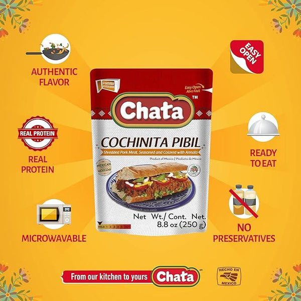 Product: CHATA CHILORIO SHREDDED PORK MEAT & COLORED WITH ANNATO (COCHINITA PIBIL)
