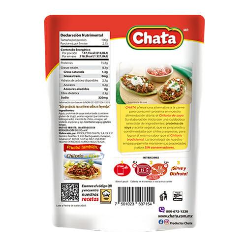 Product: CHATA SHREDDED SEASONED SOY (CHILORIO DE SOYA)