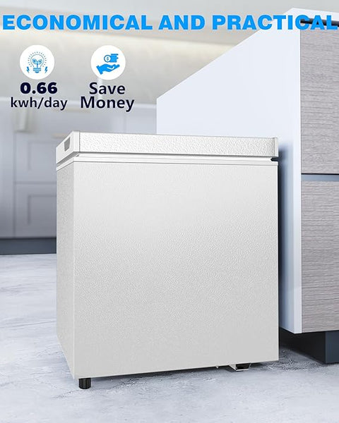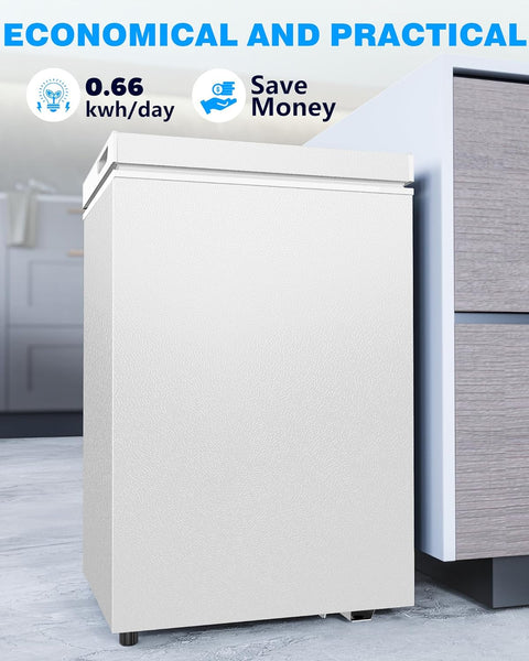 - 【Energy Efficient & Quiet】The energy-saving chest freezer is environmentally and budget friendly, with an R600a high-efficiency, low-energy compressor that cools quickly and uses just 0.68 kWh of electricity per day. And with an operating noise level of less than 40 decibels, the freezer ensures you're not disturbed.