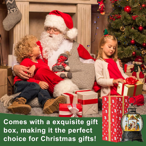 - ✨ 【Sacred Nativity Scene】 Celebrate the heart of Christmas with this beautifully detailed Adoration of the Magi manger scene. Warm white LED lights illuminate the continuously swirling glitter, creating a peaceful, snow-like effect.