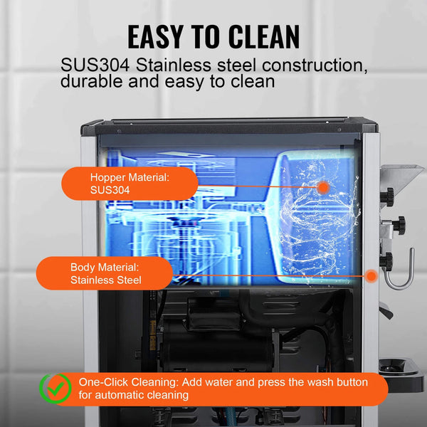 Craft up to 20-25 liters of silky, delicious hard-serve ice cream per hour, ensuring you stay ahead of demand even during peak hours. Its sleek stainless steel exterior is more than just durable; it’s a statement of modern sophistication that fits seamlessly into any commercial kitchen.