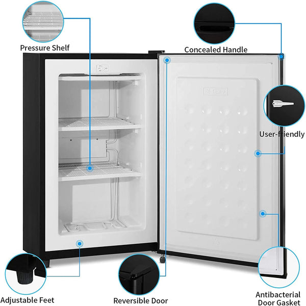 - Adjustable Leveling Legs - It is installed with adjustable leveling legs for convenience to keep the freezer balanced.