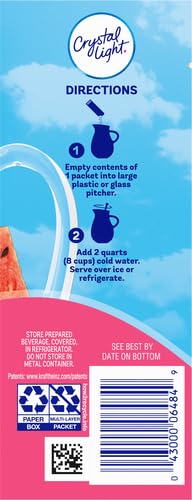 Crystal Light Artificially Flavored Strawberry Watermelon Powdered Drink Mix is a refreshing beverage you can enjoy at any time of day. The fruity watermelon strawberry flavor offers a refreshingly smooth taste. Simply mix one fruit drink packet with 8 cups or 2 quarts of water, stir, and enjoy! All the flavor and only 5 calories, just the way you like it.