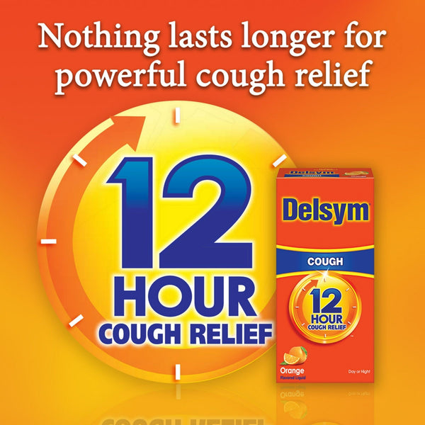 Delsym has a full line of cough products for both adults and children. This includes 12 hour products which provides cough relief with every dose as well as Adult Cough+ and Children Cough+ products which relieve cough as well as other cold symptoms. Delsym Adult 12 hour Cough Medicine provides powerful Cough relief for 12 Good Hours. It provides cough relief that extends up to 12 hours to help alleviate your nagging cough. Delsym is the #1 Pharmacist Recommended Cough Suppressant Brand*. This product contains one 5 FL OZ bottle and is of Orange Flavor. It is also available in Grape flavor. Delsym 12 hour range is also available for Children. SYMPTOMS RELIEVED: Delsym Adult 12 hour Cough Relief helps relieve cough_x000B_ ACTIVE INGREDIENT: Contains Dextromethorphan Polistirex that helps suppress your cough Use as directed. Keep out of reach of children. *U.S. News & World Report/Pharmacy Times 2020-2021