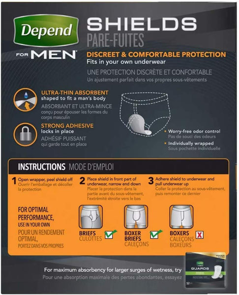 Depend shields for men are designed to provide discreet and reliable protection against incontinence. The shields are made from a soft, comfortable material that is gentle on the skin, and they are designed to fit securely and comfortably in the underwear. The absorbent material in the shields quickly wicks away moisture and locks it in, providing a dry and comfortable feeling for the wearer.