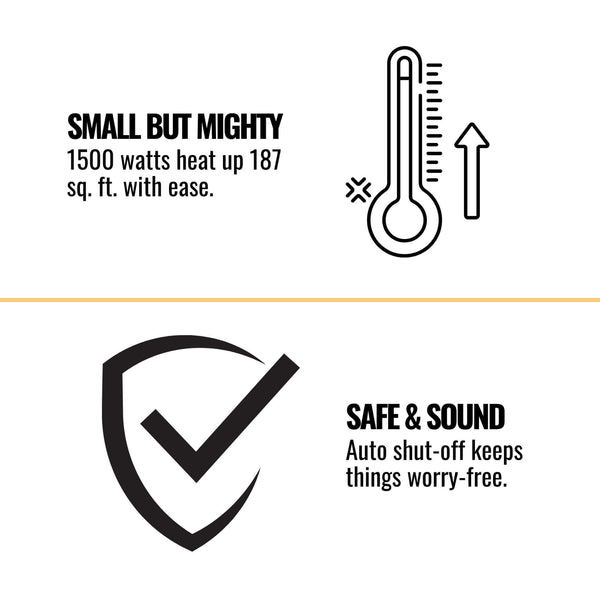 - With auto shut-off, this heater offers safe, reliable warmth from a certified ceramic element. Enjoy worry-free comfort anytime.