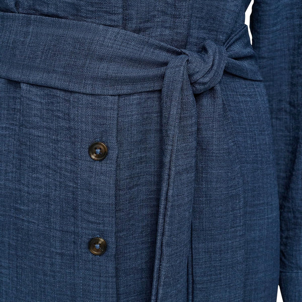 - Features: long sleeve, collar neck, midi dress, tie waist belt, shirtdress