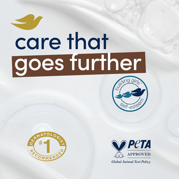 - CARE WITH YOUR CLEANSER: Globally, Dove does not test on animals and is PETA Approved. Our mission is to help the next generation of women develop a positive relationship with the way they look, helping them raise their self-esteem.
