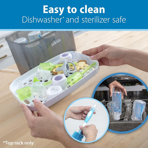 - DISHWASHER SAFE. Safe for use in dishwasher (top rack only), electric and microwave sterilizers or boiling water. BPA Free.