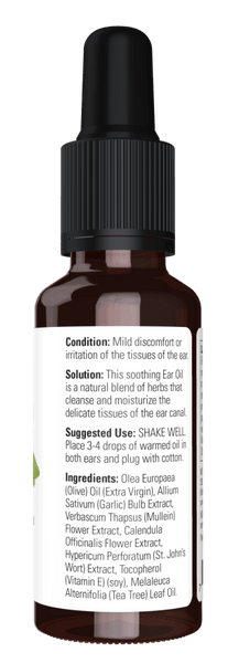 SOLUTION: This soothing Ear Oil is a natural blend of herbs that cleanse and moisturize the delicate tissues of the ear canal.