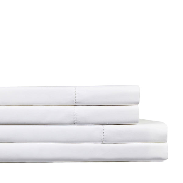Our 500 thread count Sateen hemstitch sheet set is woven using extremely fine yet durable Egyptian cotton. We finished the flat sheets and pillowcases with classic hemstitch embroidery and generously cut our fitted sheets to fit mattresses up to 18" deep. This sheet set is of exceptional quality and elegance, all at a comfortable price.