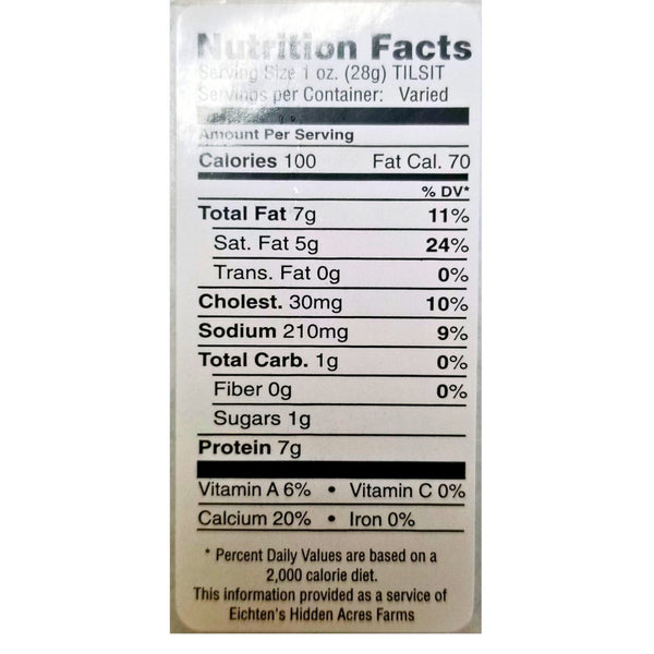 Eichten’s Tilsit is an aged semi-hard pre-ripened cheese that has a texture of a Colby with hints of Cheddar at the end. It will age up to 7 years just like in Europe which helps develop the great flavor taste.
