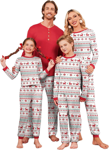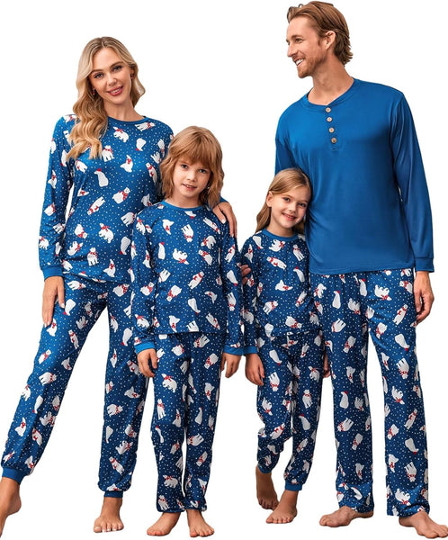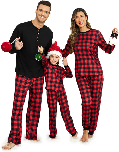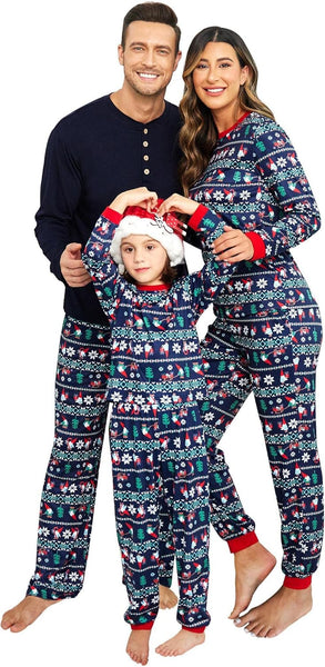 - FEATURES: Family christmas pajamas matching sets feature with long sleeve sleep top and long lounge pants, contrast color trim, 2 practical big pockets. Womens and kids pajamas featuring classic round neck, and jogger long pants. Mens pajamas set featuring henley collar, solid color tops and printed long pants with adjustable drawstring