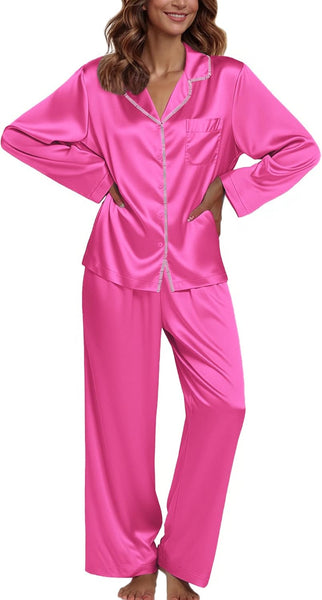 - Comfy Material:Silk pajama set is made of Premium 95%Polyester+5%Spandex satin fabric.Ultra Soft Silky Ekouaer Sleepwear,which is lightweight, breathable and skin-friendly, just like wrapped in a cloud, helping you have a sound sleep