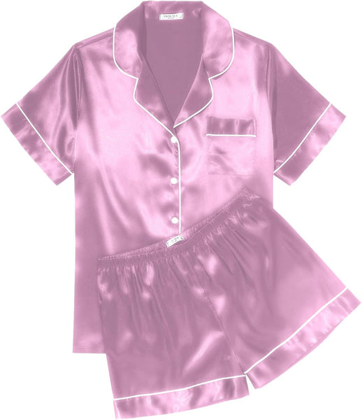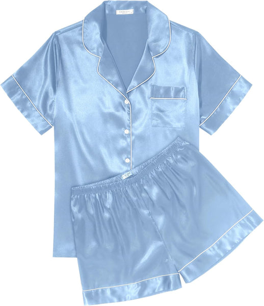 - Pajama Top:Sleepwear for women with short sleeve,notch collar,button up pjs top and one chest pocket design.Skin-friendly satin pajamas for women which is great for sleeping,casual wear or lounging