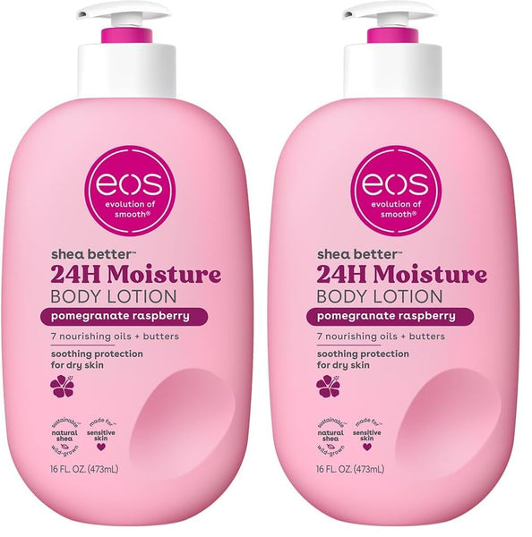 - SUSTAINABLE SKIN CARE: Protect and moisturize with eos Shea Butter Body Lotion that includes 7 nourishing oils + butters, like natural shea butter and shea oil. Enjoy delightful fragrances that last all day on skin