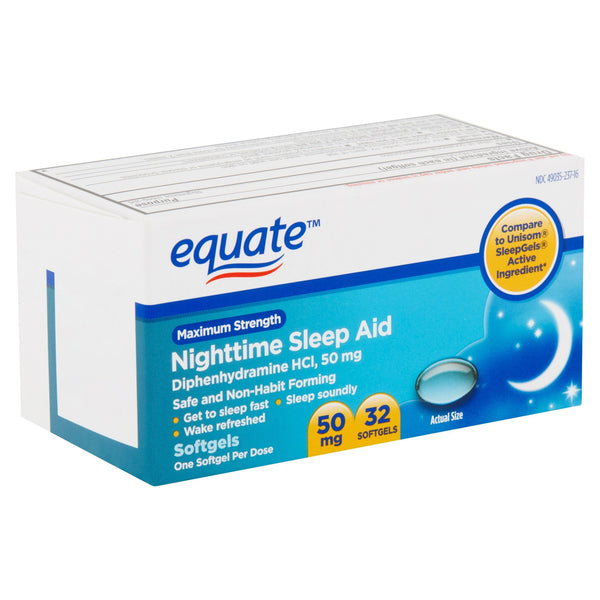 Equate Maximum Strength Nighttime Sleep Aid Softgels; 50 mg; 32 Count: