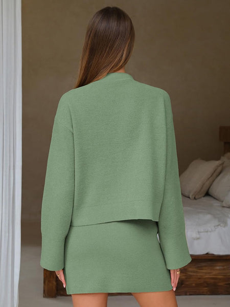 - Design: Sweater Skirt 2 Piece Sets for women, include a v neck long sleeve cardigan sweater and mini sweater skirt. The outfit combines style and functionality effortlessly, its minimalist design offer a versatile and flattering fit for you