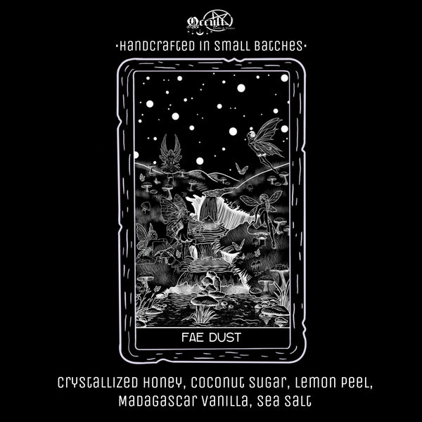 The antithesis to our signature seasoned salt, Bone Dust; Fae Dust is a naturally sweet coconut honey lemon sugar topper. With a hint of vanilla and a touch of sea salt, this unique flavor profile compliments glazed carrots, pork tenderloin, french toast, or added to cream cheese for a bagel! A delicious addition to coffee or tea, and the perfect summertime cocktail rim liner! How will you use this magical sweet blend?