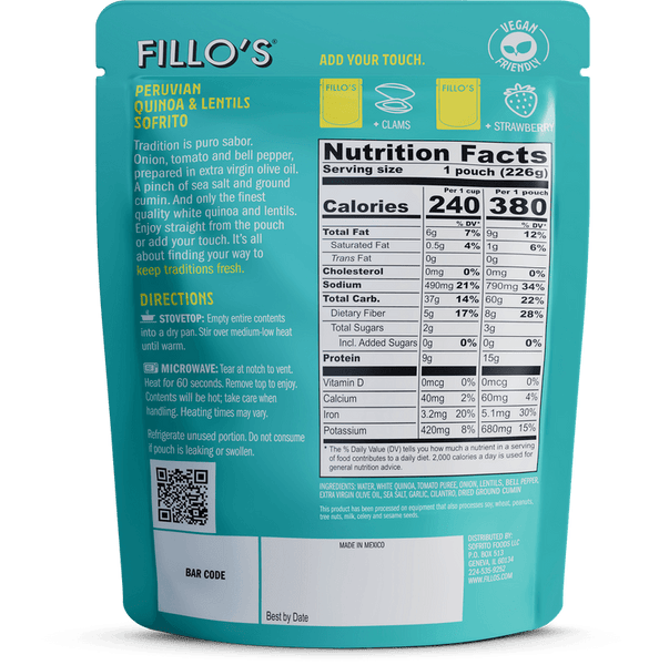 Product: FILLO'S PERUVIAN LENTIL & QUINOA
