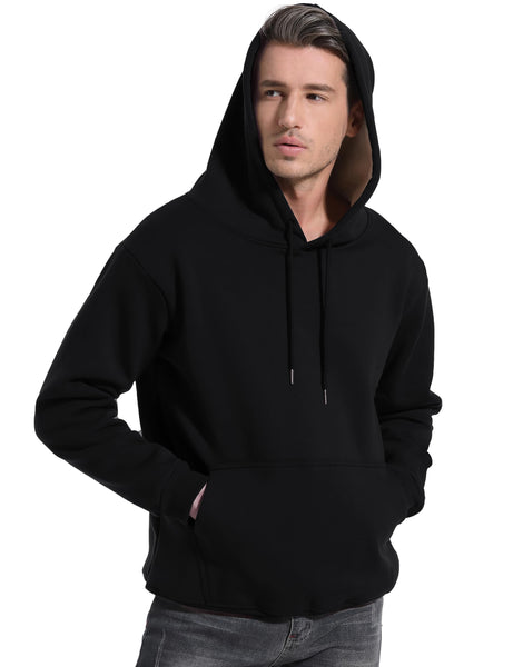 Flygo Men's Casual Fleece Sherpa Lined Hoodie Winter Warm Pullover Hooded Sweatshirt(Black-XL)