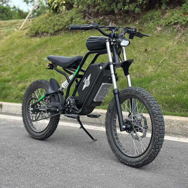 Unleash your adventurous spirit with the Freego Nova 3 Mid-drive Electric Motorcycle, your ultimate all-terrain companion. Powered by a robust 1000W motor, it effortlessly conquers steep hills, rocky trails, and sandy paths with unmatched agility and stability. Experience longer rides with extended battery life, so you can push beyond your limits and embrace every wild adventure.