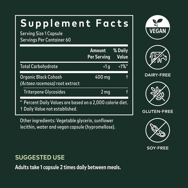 Introducing Gaia Herbs Black Cohosh, the ultimate menopause support supplement that’s as reliable as your favorite little black dress. Crafted with organic Black Cohosh, these vegan liquid phyto-capsules are your go-to for maintaining hormone balance and supporting overall health during the menopausal transition. With 60 capsules in every chic bottle, you’re set for a full 30-day supply of plant-powered relief. Each capsule is like a supportive friend, helping to smooth out those hormonal bumps and keep you feeling fabulous at any age. It's time to embrace your natural rhythm with the grace and poise of a red carpet star.