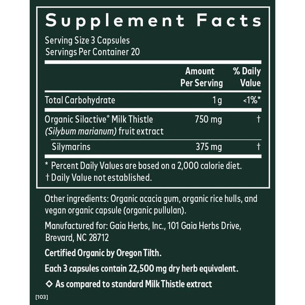 Gaia Herbs Milk Thistle is your liver's new best friend, offering a symphony of support with every vegan capsule. Designed for those who believe in a little extra TLC for their liver, these capsules are packed with the goodness of milk thistle, a botanical revered for centuries. Each capsule is a gentle reminder that your liver deserves a standing ovation for its daily performance.