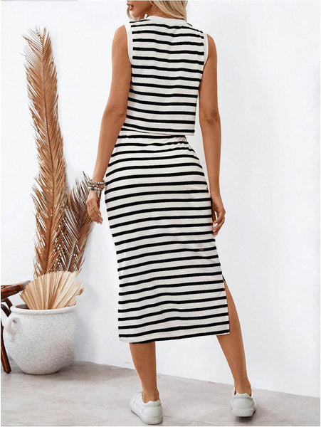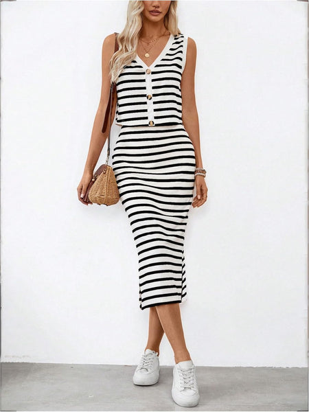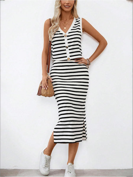 - Skirt sets women 2 piece outfits, featuring with maxi pencil split skirt and top set, striped sleeveless, button front tank top, beach summer vacation cruise outfit for women, show your charming