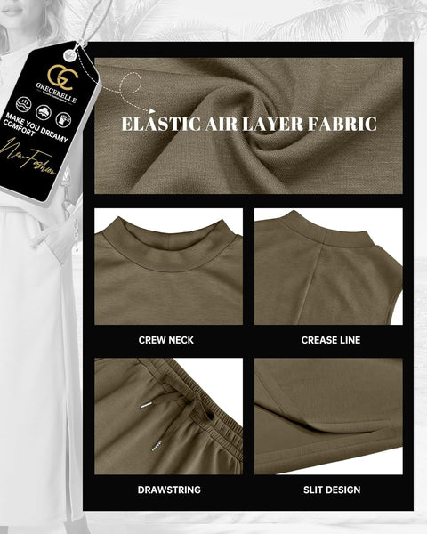 - Design:two piece sets for women summer,two piece skirt set for women Mock Neck Sleeveless Tops,Split Maxi Skirt,Elastic Drawstring.
