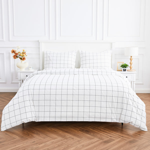 Our 100% cotton prewashed percale duvet covers are inspired by the look and feel of vintage fabric. The 200 thread count percale weave keeps this bedding crisp, smooth, and airy.