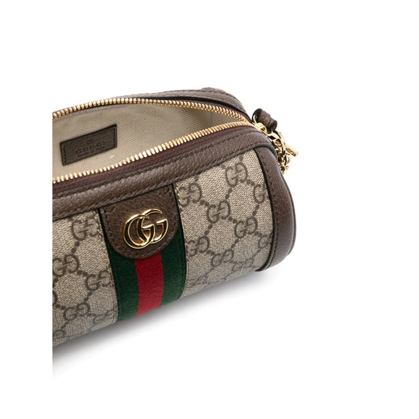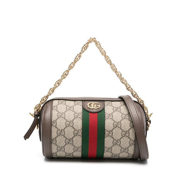 ebony brown/ecru calf leather GG Supreme canvas signature Web-stripe trim signature Double G logo adjustable shoulder strap detachable chain-link top handle main compartment internal logo patch canvas lining gold-tone hardware top zip fastening This piece comes complete with a protective dust bag.