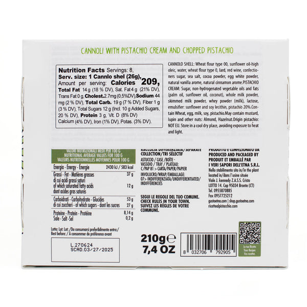Gusto Etna, Sicilian Cannoli filled with Pistachio Cream, 8 units Mini Cannoli in Gift Box with Pistachio butter