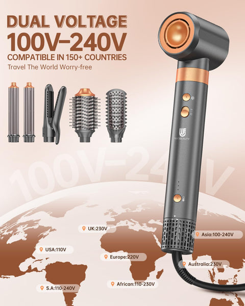 - DUAL VOLTAGE FOR WORLDWIDE USE: This hot air multi styler compatible with 100V–240V, works in the U.S., Europe, Asia, Australia and 150+ countries without a converter. Perfect for vacations, business trips, or on-the-go styling. Just enjoy your idea beautiful hair style anythere you like
