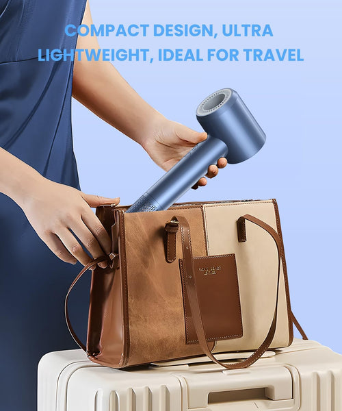 - 【Easy to Carry & Ergonomic Compact Design】This lightweight and portable travel hair dryer weighs only 0.9 lb, ideal for home and travel. With an ergonomic and compact design, it has a comfortable grip and simple operation buttons (Switch/Cool Air Mode/Wind Speed Setting/Temperature Setting). Attach the 360° rotating magnetic nozzle for precise airflow, perfect for different needs of all hair lengths or hair types.