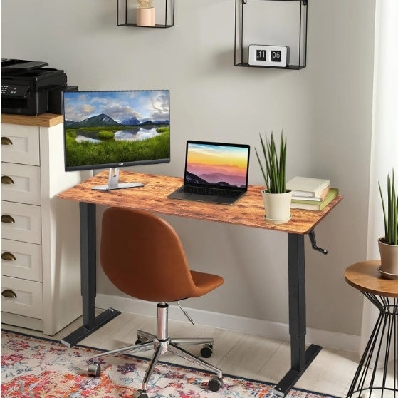 Product Name: Hand Crank Adjustable Desk – Height Adjustable with Flat Metal Legs – Ideal for Home, Office, Gaming, or Study Use (Brown)
