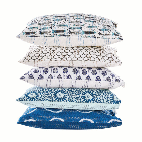 Our handmade throw features traditional Indian block prints. The cotton fabric is stitched by hand to create a unique piece of decor. Due to the handmade nature of these shams, variations will occur in the printing and stitching.
