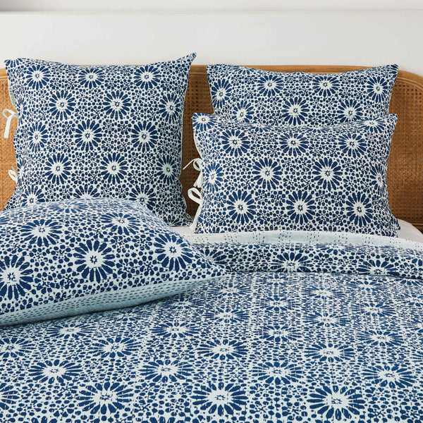Pairs with Hand Stitched Block Print Kantha Coverlets
