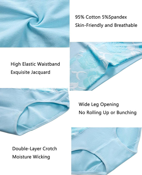 - SOFT & STRETCHY COTTON FABRIC: Our women's cotton underwear is design for comfort & breathability & health. No pinching, No rolling, No chafing. Cotton underpants is particularly soft and comfortable to wear on the body.