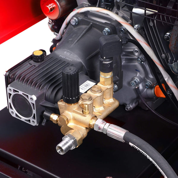 - Includes a 50' steel braided hose, a 47" pressure washer gun, five quick-connect nozzles (0°, 15°, 25°, 40°, and soap), and an 8' inlet hose with a filter for optimized usage.
