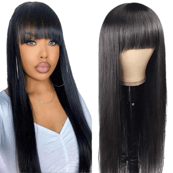 Upgrade your look effortlessly with this human hair wig with bangs in natural black. It’s perfect for daily wear, special events, or a quick hair makeover, offering exceptional quality and a natural look that boosts your confidence. Embrace the freedom to style it just like your own hair for a truly personalized experience.