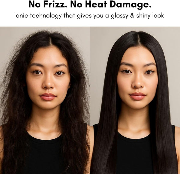 - Ionic & Negative Ion Technology for Frizz-Free Shine Advanced ionic + negative ion technology releases millions of ions to lock in moisture and reduce static. Perfect for curly, wavy, or straight hair, this frizz-control blow dryer ensures silky, glossy results with no heat damage.