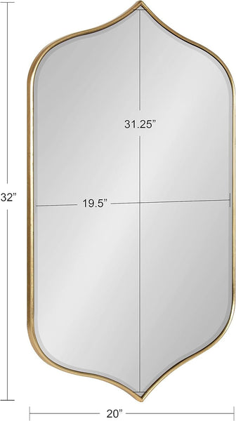 Crafted with a high-quality metal frame and finished in luxurious gold, this mirror offers both style and durability. Its 20-inch width and 32-inch height make it a commanding focal point, perfect for brightening up entryways, living rooms, bedrooms, or bathrooms. The mirror’s elegant, sculptural form brings a refined aesthetic to spaces both contemporary and classic.