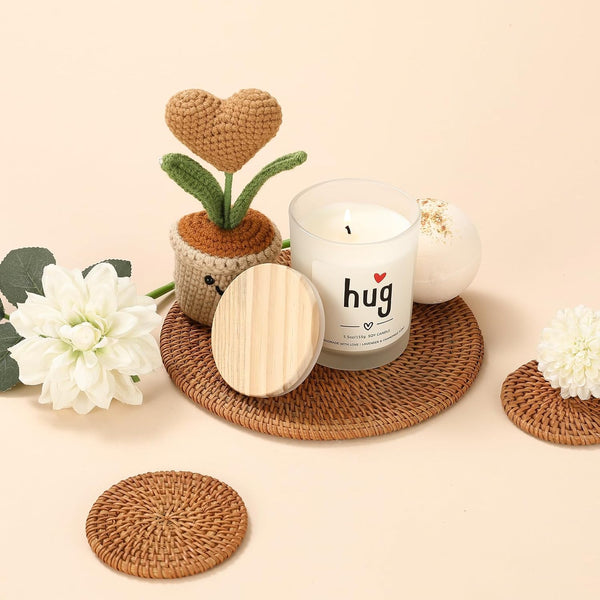 - 【7-Piece Lavender-Infused Self-Care Collection】:Includes: 16oz wildflower coffee mug, handwoven heart-shaped succulent, lavender soy wax candle, artisanal soap, ultra-soft socks, "Sending Hugs" greeting card, and elegant gift box. Every item promotes relaxation and positivity.