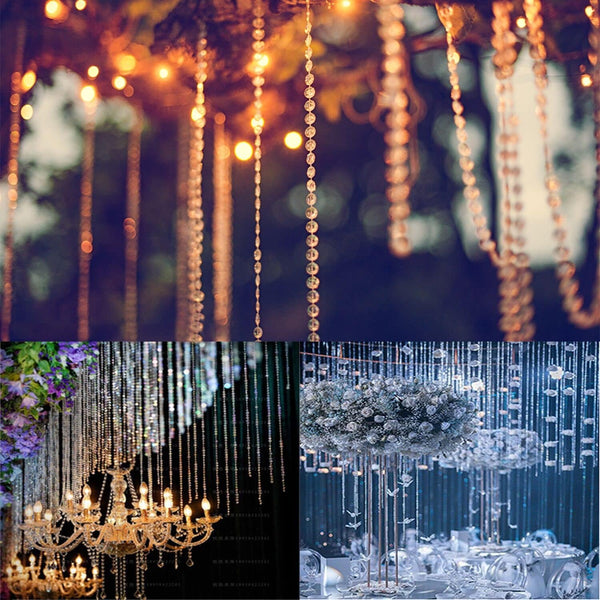 - DIY CRAFT SUPPLIES: Our clear iridescent crystal beads string is very nice, great for crafting projects, manzanita tree centerpiece, handmade crafts items, beaded curtains for doorways, beaded curtains for closet, beaded door curtains, suncatcher for window, hanging crystals for decoration for centerpieces, cakes, bouquets, wreaths, crystal rhinestones trim, luxury beauty jewels chain, make your own christmas ornaments, to decorate clothes, shoes, bags, photo frames, pretty DIY accessories, etc.