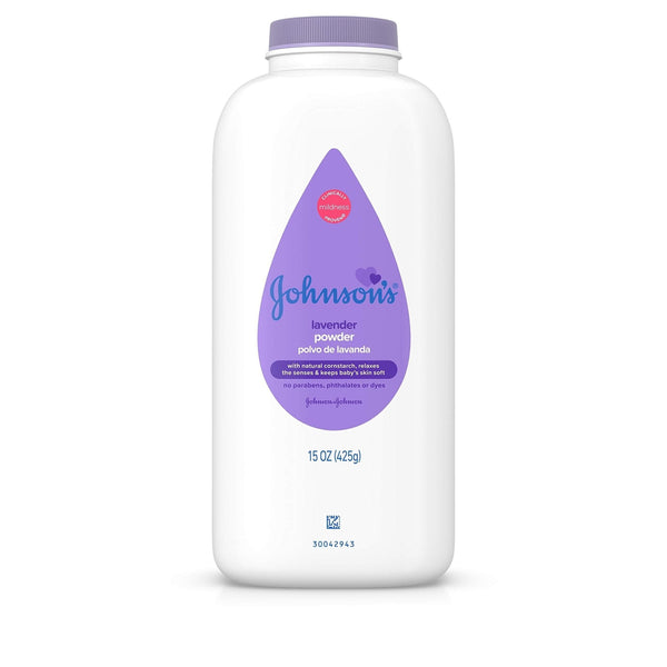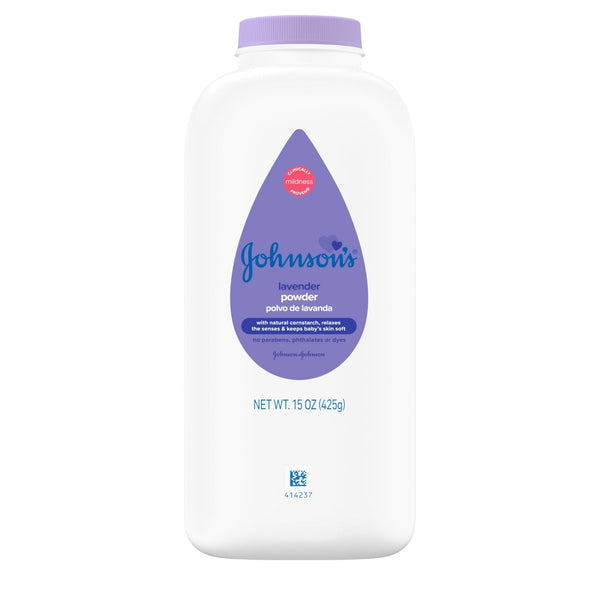 - 15-ounces of Johnson's baby powder with naturally derived cornstarch, aloe & vitamin E provides a gentle way to soothe your baby's delicate skin, keeping skin dry & leaving skin soft