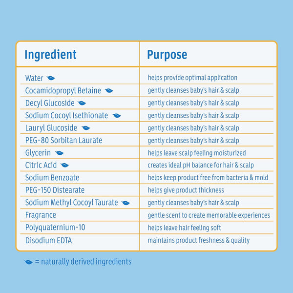 Johnson's Baby Shampoo with a mild, tear-free formula provides a mild, gentle clean that won't irritate your baby's eyes during bath time. Specially formulated for fine baby hair and delicate scalp, this gentle cleansing baby shampoo gently washes away dirt and germs as it leaves your little one's hair soft, shiny, clean and smelling baby fresh. The Johnson's No More Tears formula is as gentle to the eyes as pure water and won't irritate baby's eyes during bath time. This tear-free hair shampoo for babies is hypoallergenic, pediatrician-tested, and free of parabens, phthalates, sulfates, and dyes. To use, wet baby's fine hair with warm water, apply shampoo, gently lather, and rinse. For over 125 years, Johnson's formulas have been specially designed for baby's unique and delicate skin and hair. We collaborated with and listened to 11,500 parents, midwives, and pediatricians around the world.
